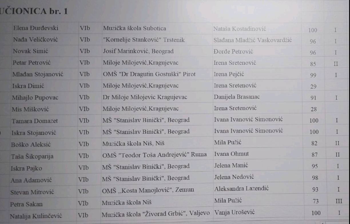 Млађан Стојановић из теорије музике са 99 поена освојио је прву награду, а ученица издвојеног одељења у Бабушници, Антонија Игњатовић у својој категорији такође прву награду са 95 поена.